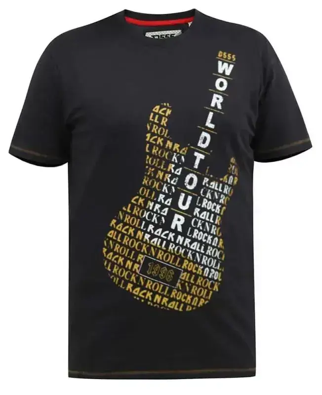 Forvasket svart T-skjorte med gitar silhuett og "WORLD TOUR"-trykk (TALL) - D555