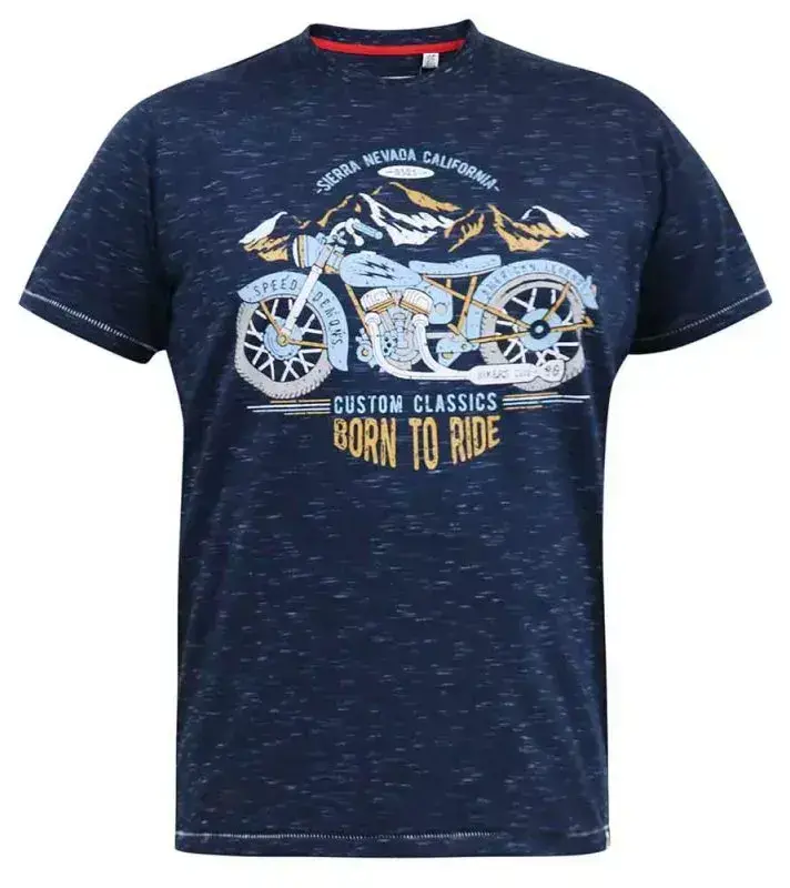 Navymelert T-skjorte med motorsykkel "BORN TO RIDE" (TALL) - D555