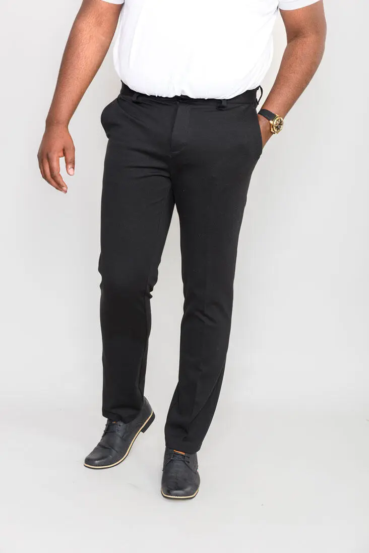 D555 klassiske pene svarte bukser. Buksene er myke, lette og med stretch i stoffet, noe som gjør dem veldig behagelige å ha på.