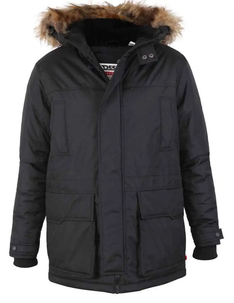 En lekker sort parka-jakke med hette. Hetten er fôret og kan holde deg varm.