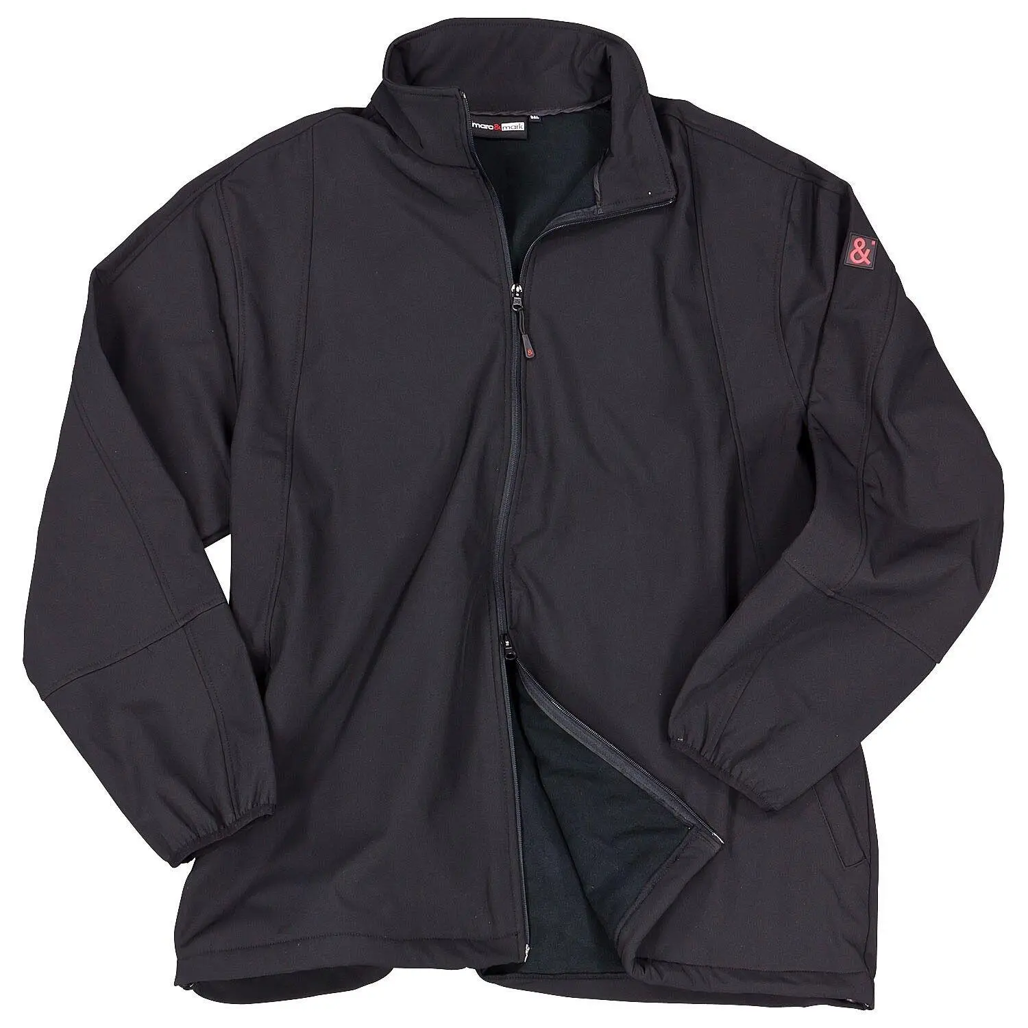 En tynn og lett svart softshelljakke i store størrelser. Softshelljakken er vannavvisende, vindtett og åndbar, og så har den tapede sømmer.
