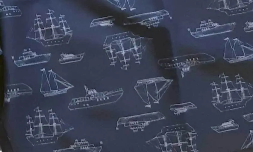 Navyblå badeshorts fra Ceceba. Badeshortsene har print av ulike skip. Det er to skrålommer foran og en baklomme med borrelåslukning.