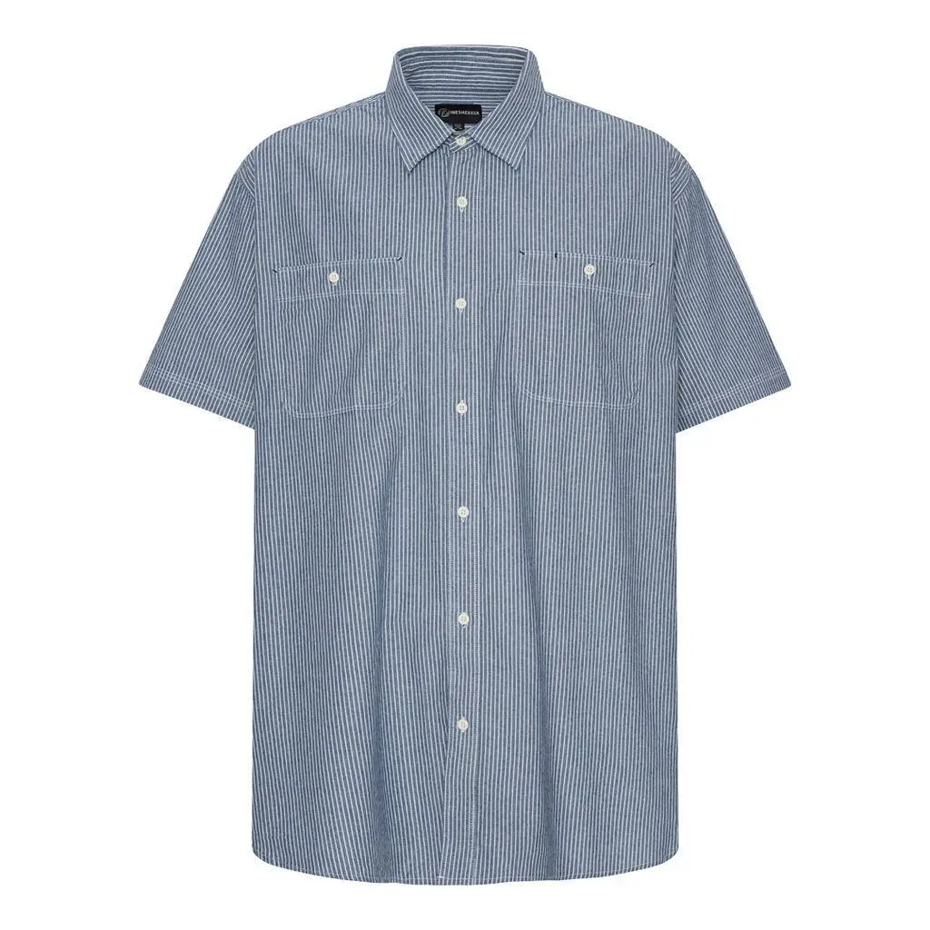 Kortermet skjorte fra Finesmekker i et klassisk design med smale blå og hvite striper. Skjorten har en vanlig skjortekrage og hel knappestolpe, som gir et pent og velkledd uttrykk. De to brystlommene med knappelukking tilfører både funksjon og et lett avslappet uttrykk.