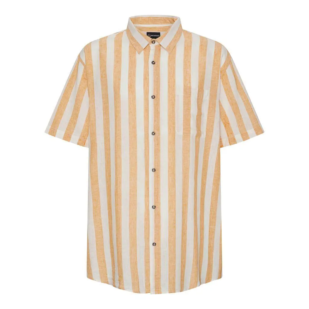 Kortermet skjorte fra Finesmekker i en lys base med loddrette striper i varme oransje nyanser, som gir et friskt og stilrent uttrykk. Skjorten har en klassisk krage og hel knappeåpning, som gjør den enkel å style både pent og mer avslappet.