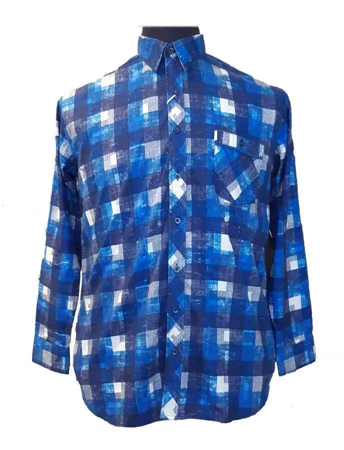 Blå rutete skjorte m. brystlomme (L/Æ) - Kamro