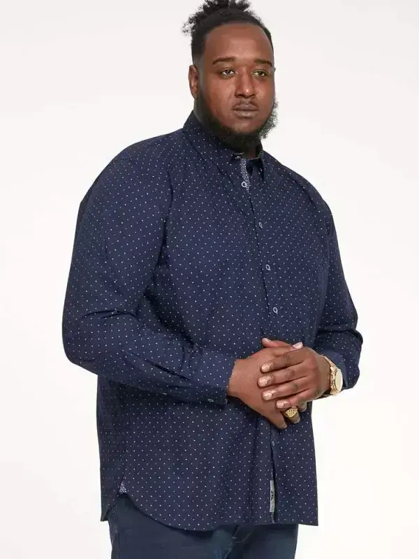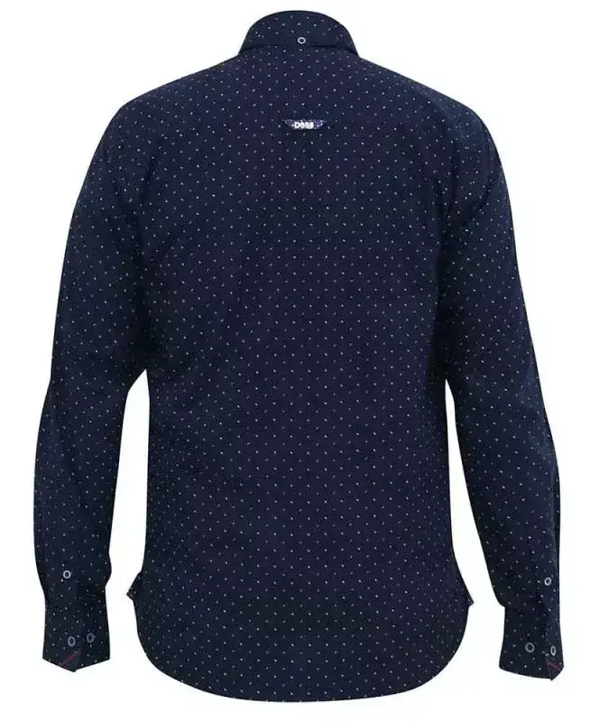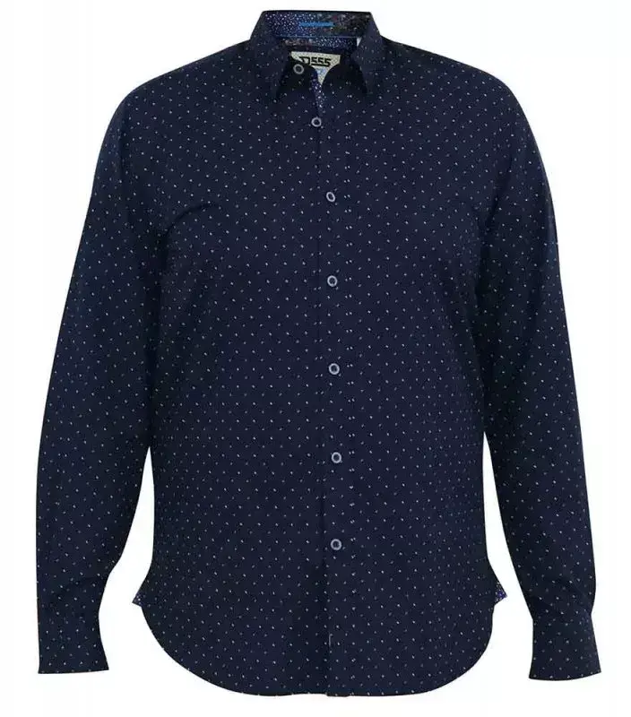 Navyblå skjorte med mikro all-over print (L/Æ) - D555