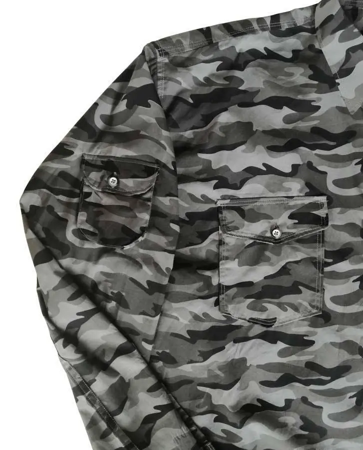 Skjorte i grå camouflagemønster - Kamro (L/Æ)