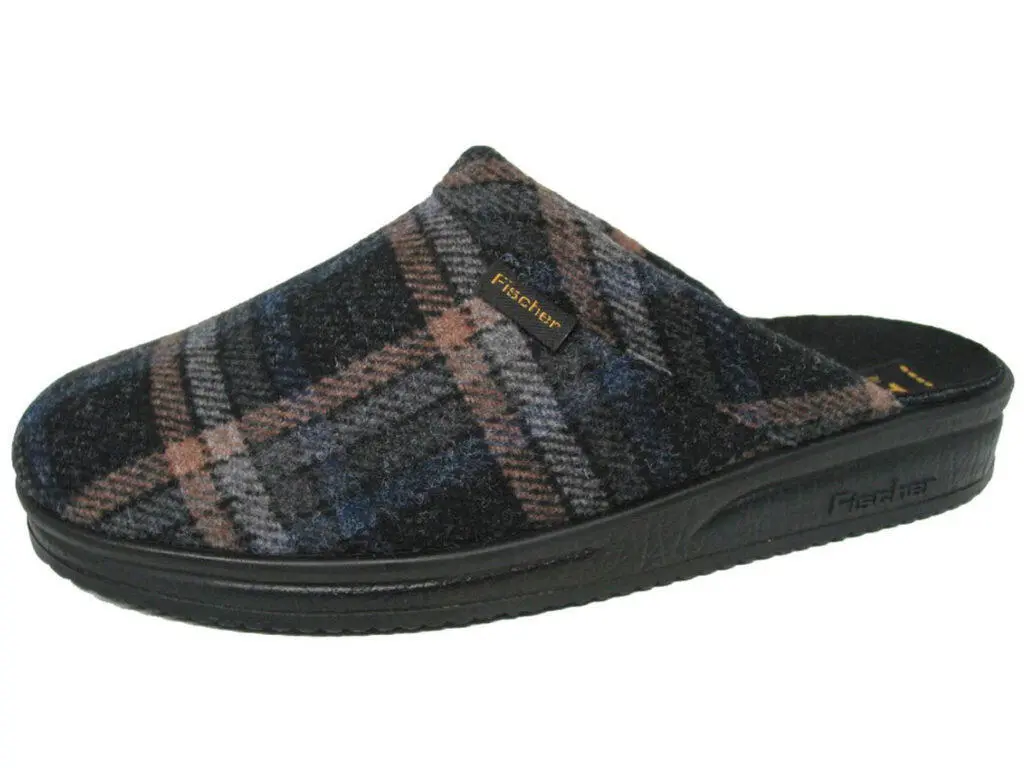 Denne klassiske hjemmeskoen fra Fischer kombinerer komfort med et kjent, tradisjonelt design. Overdelen er laget i myk, rutete filt i mørke nyanser, som gir et varmt og innbydende uttrykk. Skoen er laget for innendørs bruk og passer perfekt til deg som vil ha noe behagelig å stikke føttene i – både morgen og kveld.