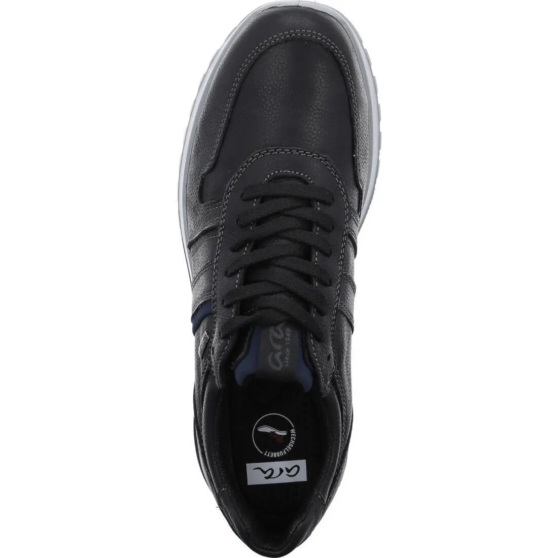 Sorte og sporty sneakers med snøring fra Ara. Overdelen i lær er veldig robust og slitesterk. Innvendig har skoen et mykt tekstilfôr som gir føttene dine behagelig varme. Innleggsålen er mykt polstret og tilpasser seg foten. Du kan enkelt bytte ut innleggssålene ved behov. Den myke allround-polstringen forhindrer ubehagelige trykkpunkter.