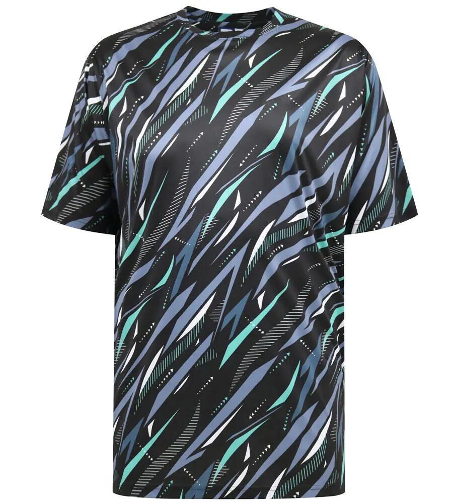 Denne Active Performance T-skjorten fra D555 er designet for deg som ønsker en kombinasjon av funksjon og stil. Den har et markant grafisk mønster i blått, grønt og svart, som gir et sporty og moderne uttrykk.