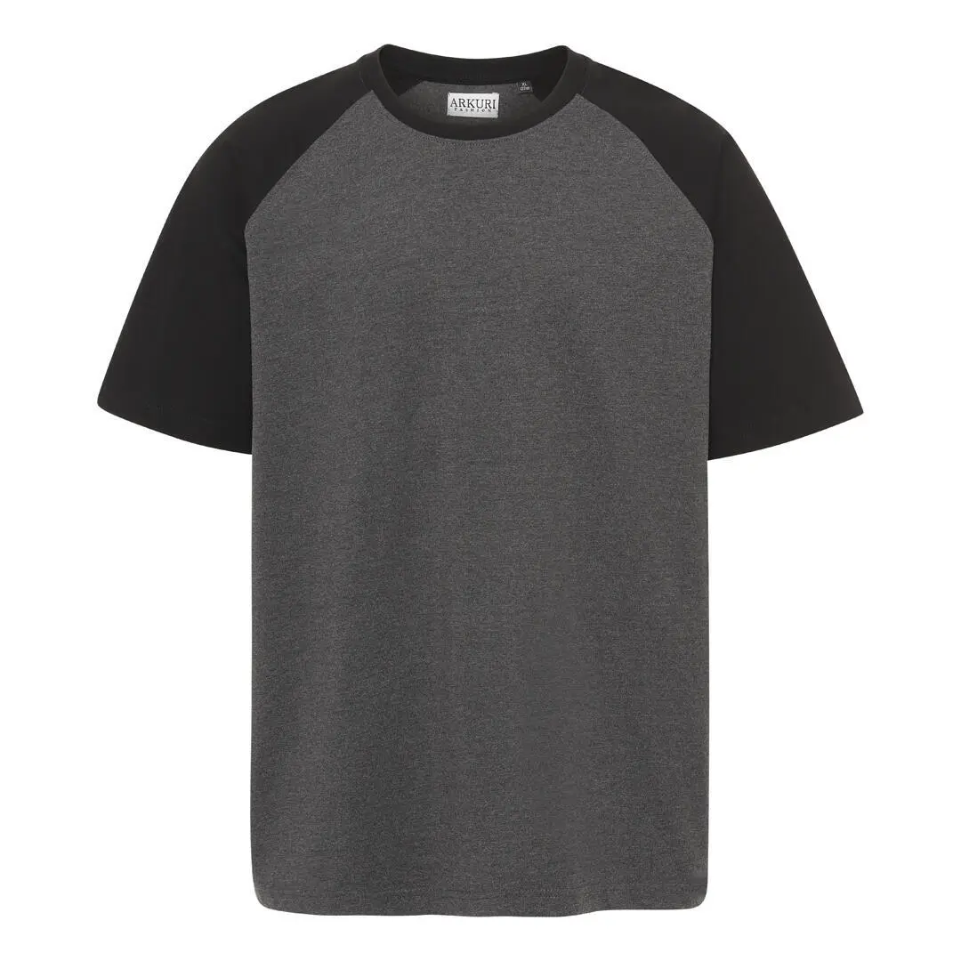 Koksgrå T-skjorte med kontrast sorte raglanermer.