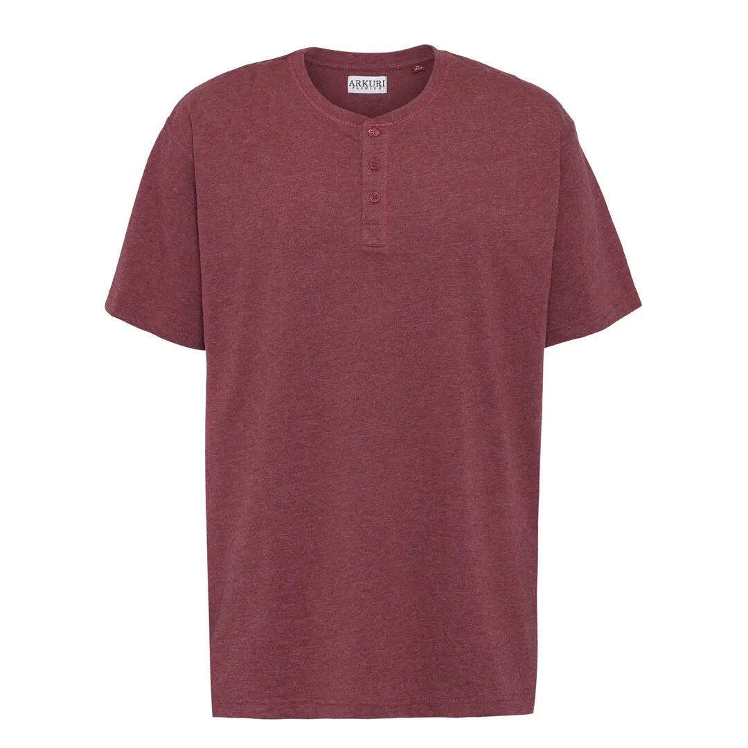 Rødmelert, myk og deilig Grandad T-skjorte med korte ermer og rund hals. Grandad T-skjorten har 3 matchende knapper i stolpelukningen.