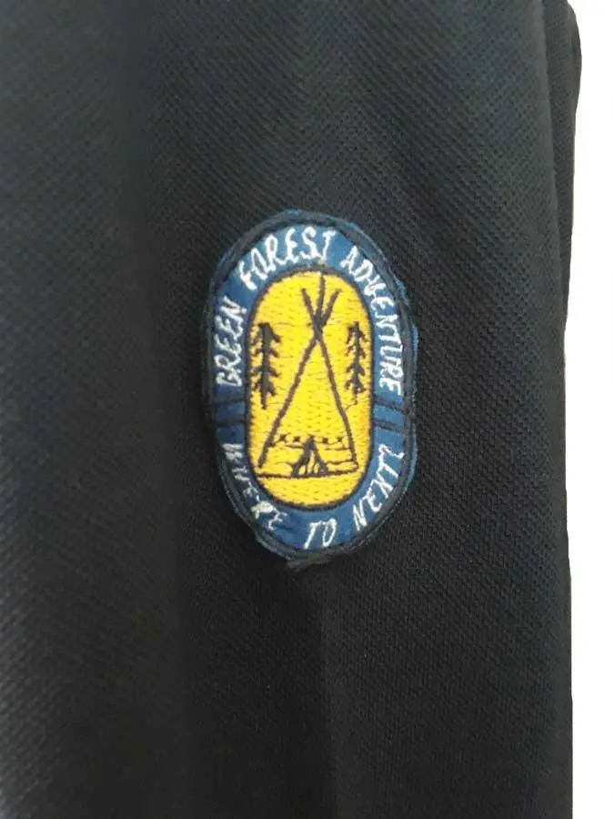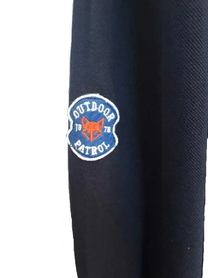 Brystlommen som sitter på venstre side lukkes med knapp. Over brystlommen sitter et rundt badge. På høyre side sitter det også 2 badges. Det er dessuten en badge på hvert erme.
