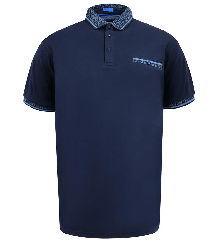 Navy polo fra D555 i et enkelt og stilrent design med fine kontrastdetaljer ved krage, ermer og brystlomme. Den klassiske polokragen og knappestolpen gir et pent og velkledd uttrykk, som gjør den enkel å bruke både i hverdagen og til mer avslappede, pyntede anledninger.