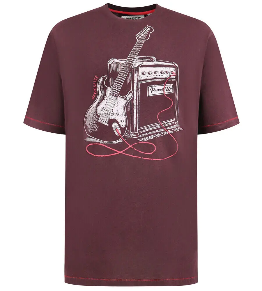 Denne bordeaux T-skjorten fra D555 er et opplagt valg for deg som vil kombinere komfort med et røft uttrykk. Foran er den prydet med et stort hvitt print av en elektrisk gitar og en forsterker med teksten “Power Up”.