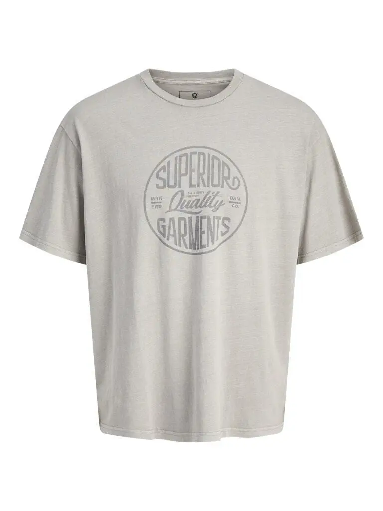 På brystet er det et trykk med teksten “Superior Garments” i en lett slitt stil, som gir et nedtonet, klassisk preg. Printet er plassert sentralt og tilfører plagget litt kant, uten at det blir for mye. Fargene er dempede, så T-skjorten er enkel å kombinere med resten av garderoben – enten du går for jeans, shorts eller noe helt annet.