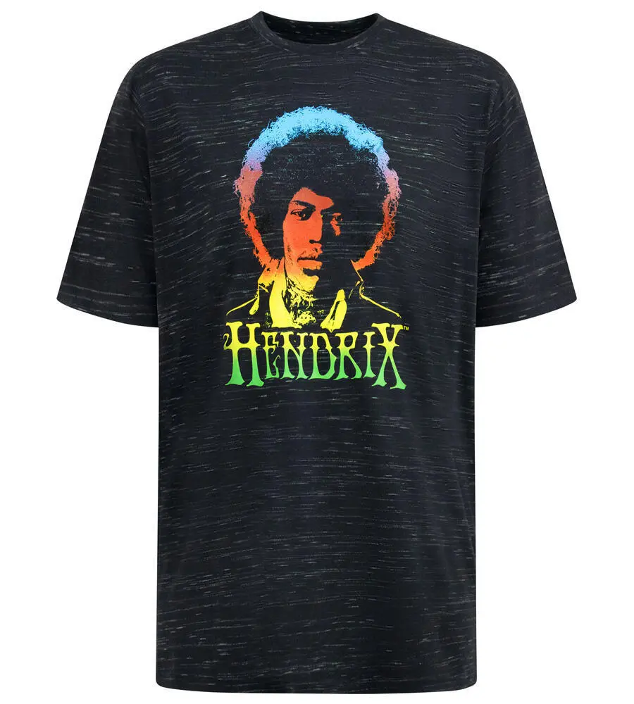 Svart melert T-skjorte med "Hendrix"-print - D555