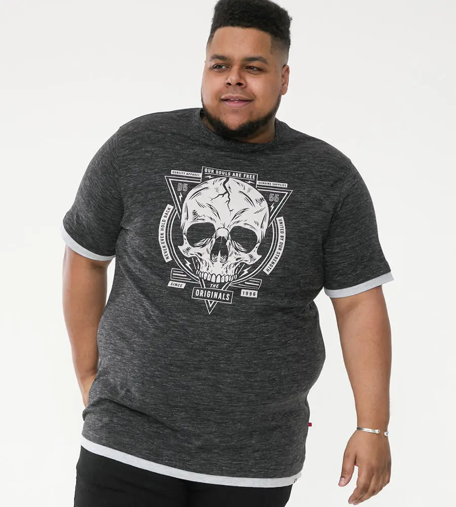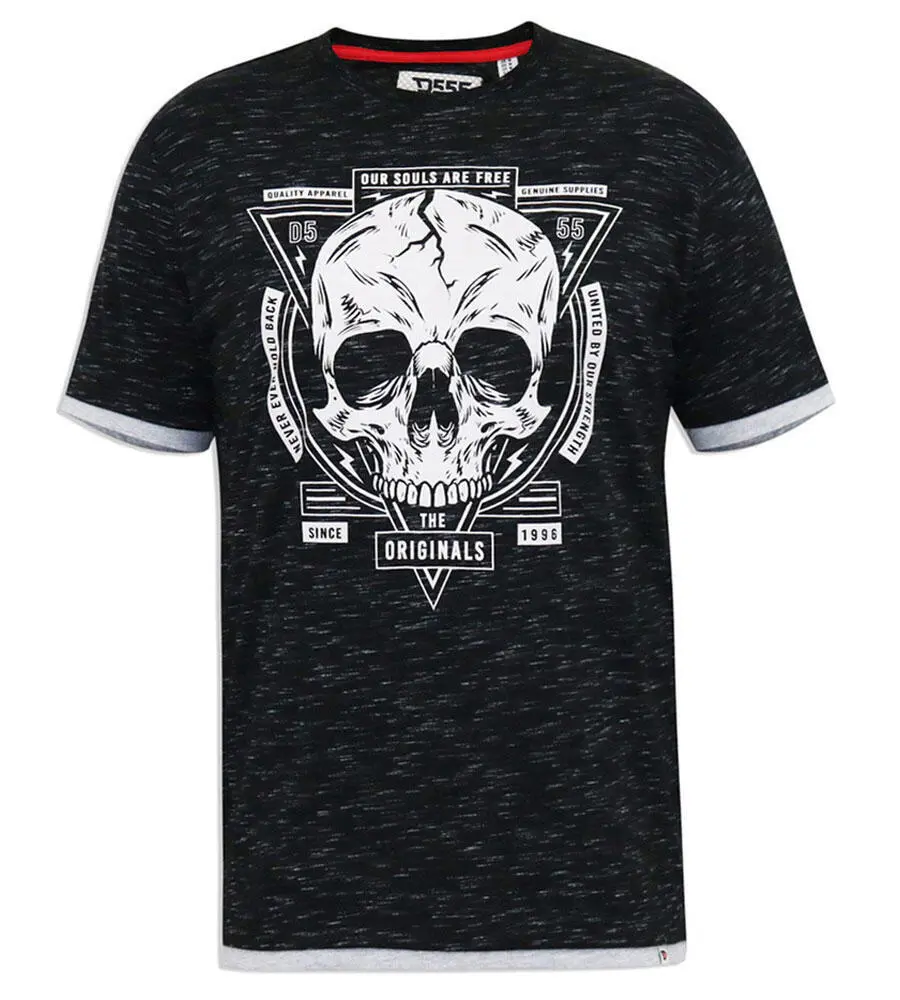 Svart melert T-skjorte med "skalle"-print - D555
