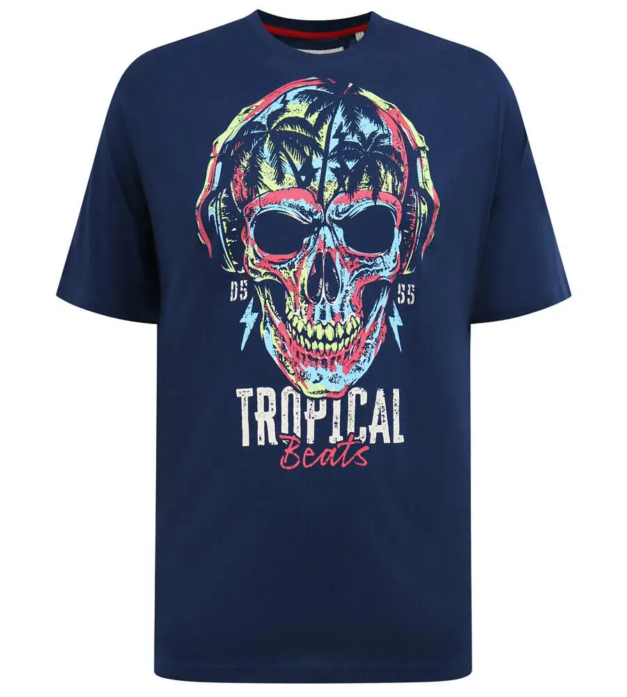 T-skjorte fra D555 med et markant og fargerikt skull-print, som gir et røft og iøynefallende uttrykk. Motivet med teksten “Tropical Beats” kombinerer en avslappet feriefølelse med et kantete design, og gjør T-skjorten til noe helt spesielt.