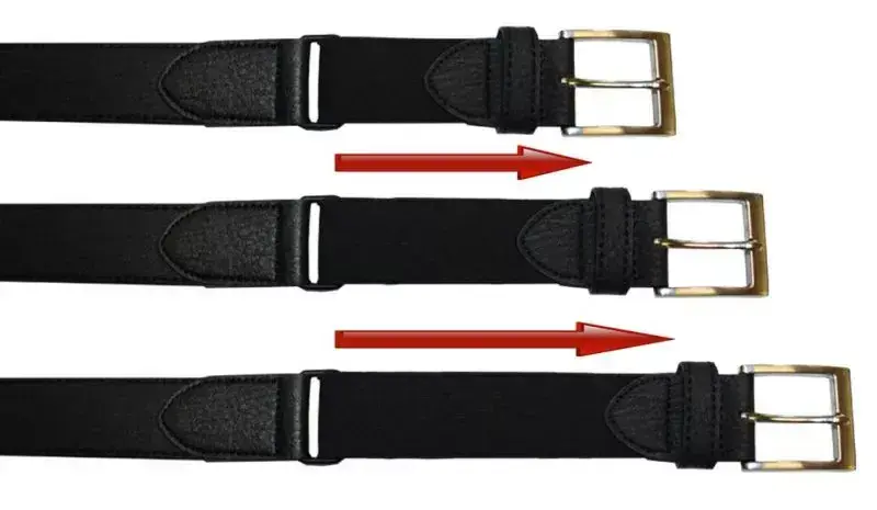 Lengden på beltet måles fra enden av beltespennen til det midterste hullet.