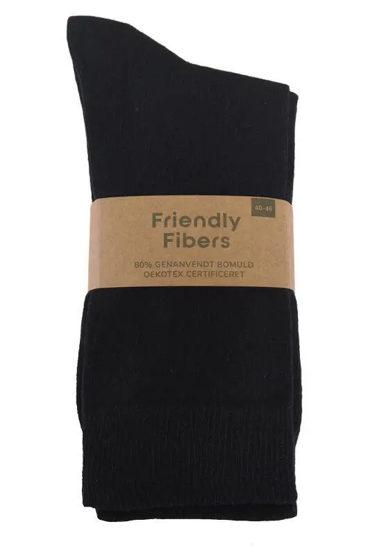 5-pak svarte sokker i 80% resirkulert bomull - Friendly Fibers