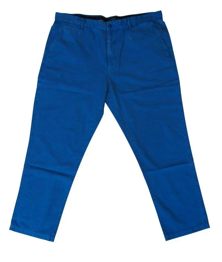 Et par lækre blå Ed Baxter Chino's. Bukserne bukserne har to stik-lommer foran + en lille ekstra lomme samt to baglommer der hver især lukkes med en knap. Bukserne lukkes med knap og lynlås.