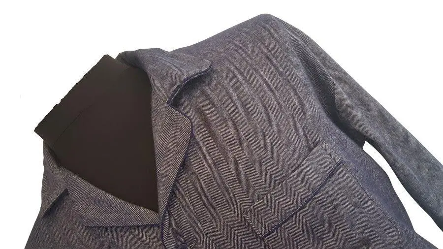 En frisk blød flannel pyjamas fra Ambassador i blå-melange farver med sildebensmønster. Pyjamasskjorten har en brystlomme på venstre bryst.