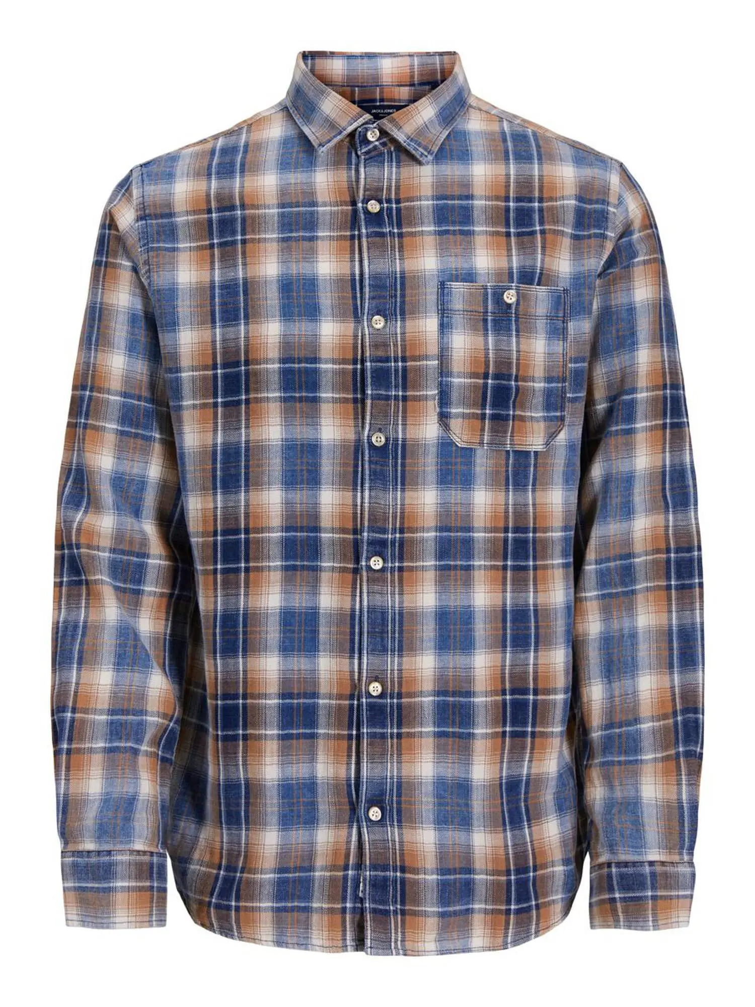 Myk og lett skjorte i flere farger fra Jack & Jones. Skjorten har et rutete mønster i denimblå, brun og off-white.