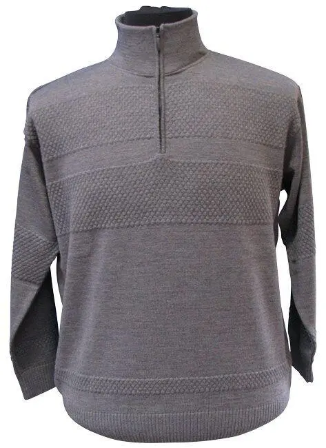 En deilig og lett polo-herrestrikk med høy hals og glidelås i halsen. Det er en fin strikk i en koksgrå farge. Ribbekant på ermene og nede. Strikken har "sjømannsmønster".