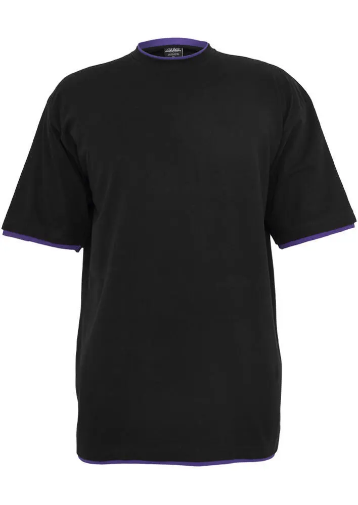 En lang T-skjorte med kontrastfarge for den høye mannen. Kontrasten i kragen, på ermene og nederst på T-skjorten gjør at det ser ut som du har en ekstra T-skjorte under. Smart og lekker T-skjorte i 100% bomull.