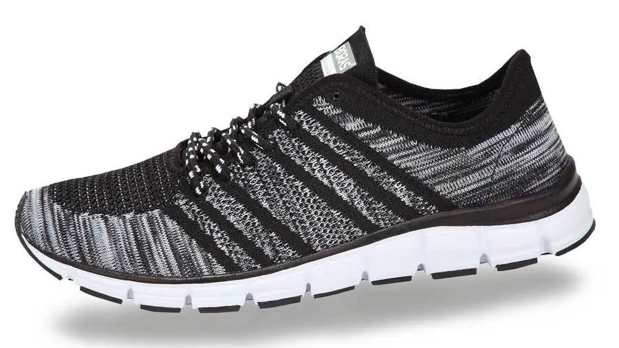 Sneakers fra Boras til menn i store størrelser med snørebånd. Skoen er svart i grunnfargen, men har også hvitt vevd inn i det svarte.
